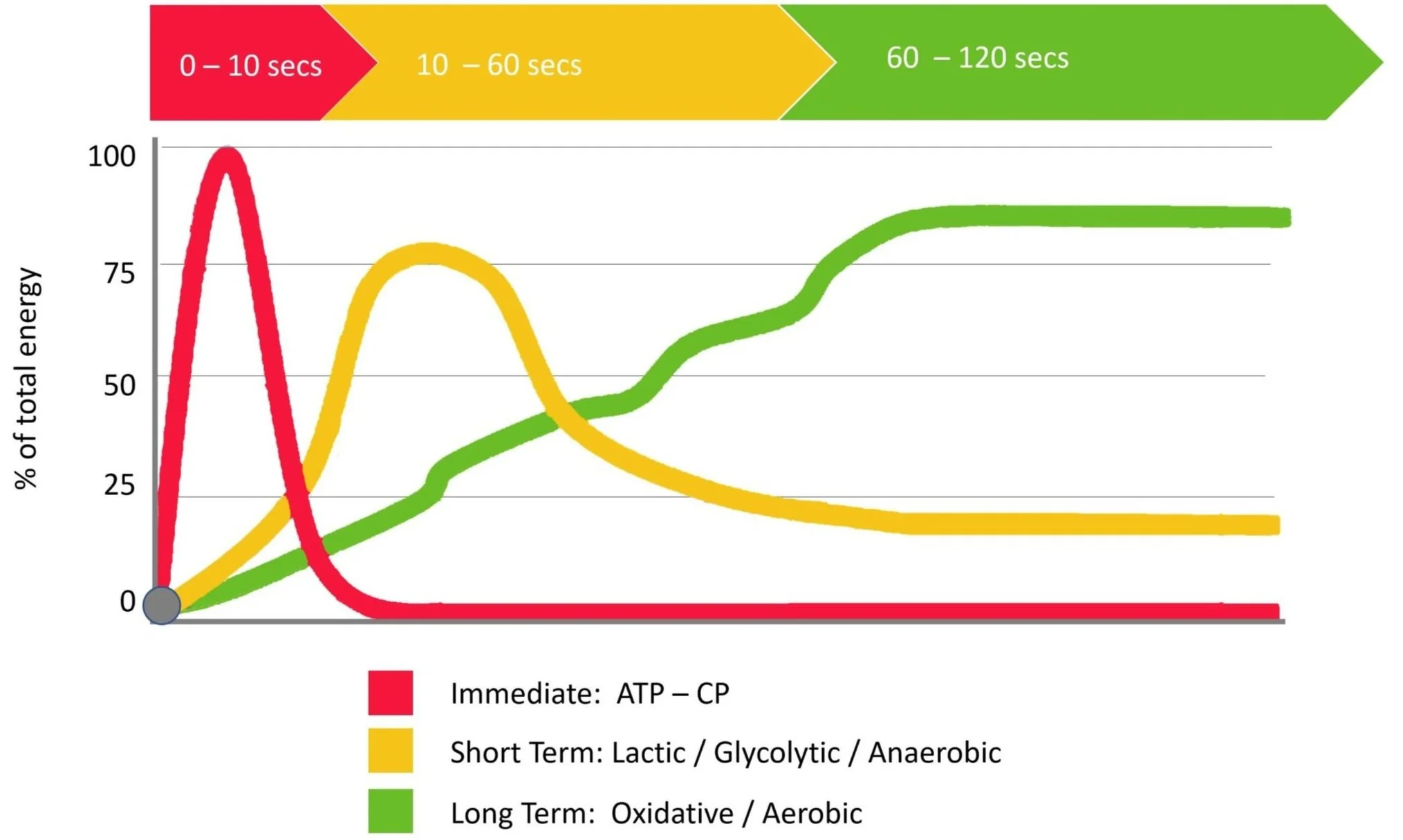 My aim here is to give you an overview of the features of each energy system, when they are most active and how we, as coaches; athletes; and general members of the population, can go about improving the capacity of these systems.